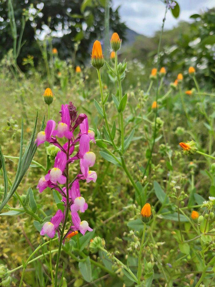 ヤハズノエンドウもあちこちでコラボしますね🩷マツバウンランにチラチラと黄色いのはノボロギクかな?みんな可愛いなぁ😍💕