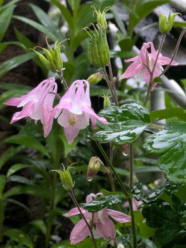 真上に咲くオダマキのお花を始めて見ました👀👀👀♪