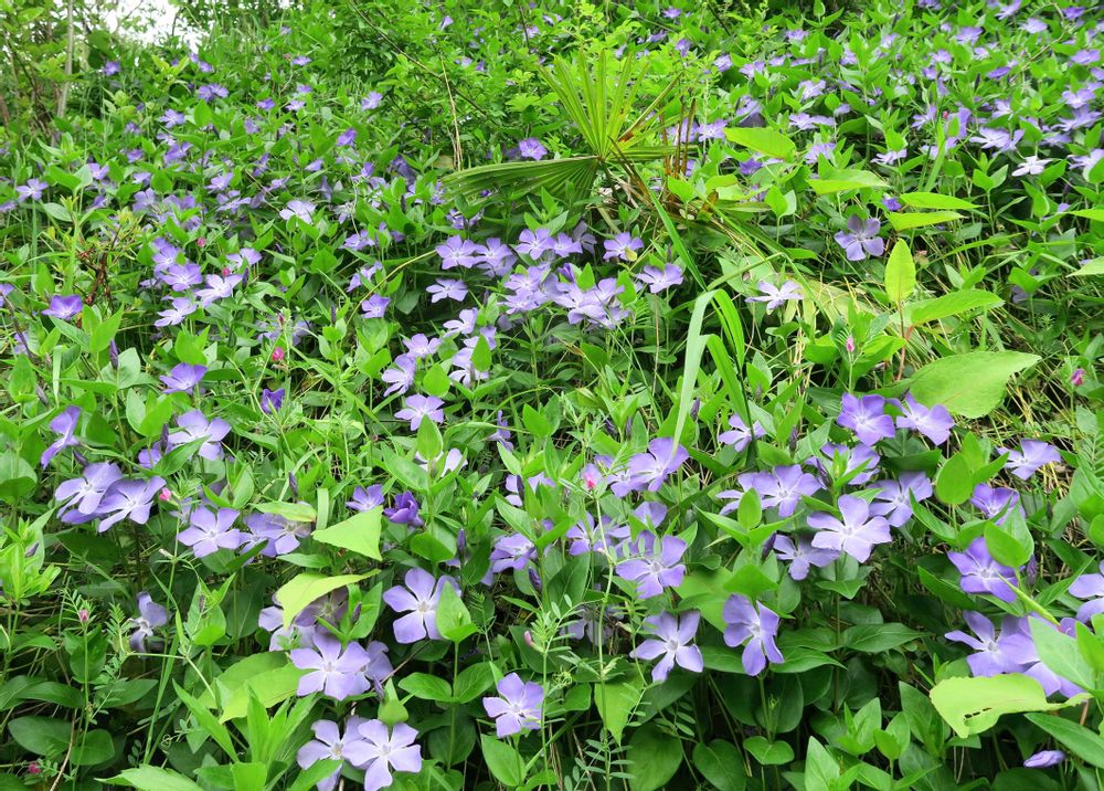 ツルニチニチソウでしょうか?野草とは思えない上品な花ですね♪