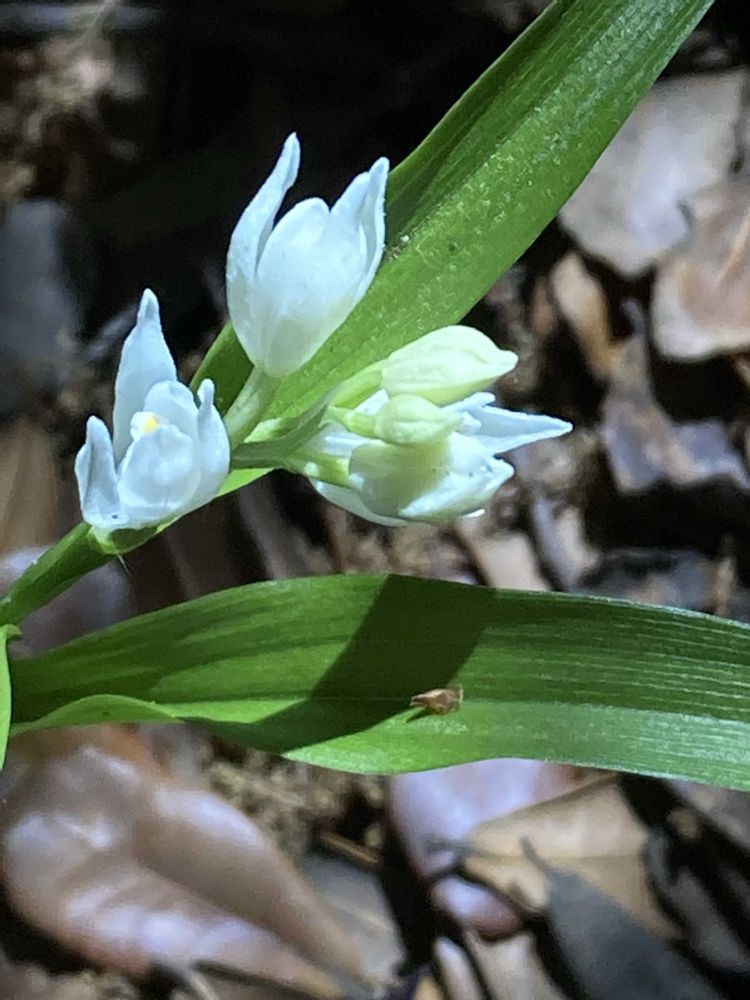 クゲヌマランは最近、方々で増えています。「あれっ、こんな所からギンラン生えて来た」と言う場合はこの花を疑った方が良いでしょう。