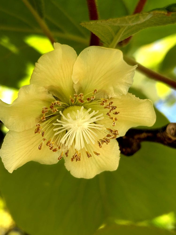 💚キウイは雌雄異株で、キウイ棚にオス、メスの木が二つ植えられています