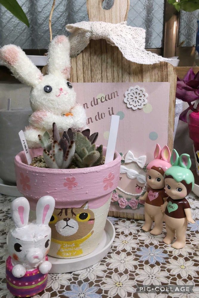 1枚目は、先日、徒長した、月兎耳さんたちをカットして、挿したもの。うまく根付いてくれますように🌿