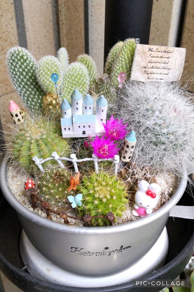 2枚目は、くるみ*さんのミニサボテンの寄せ植え。