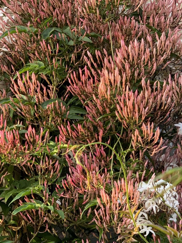 庭の羽衣ジャスミンさんのツボミちゃん🩷これからどんどん咲いていきます😊あたりいちめん香りがすごいです