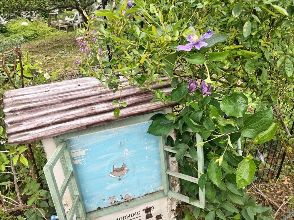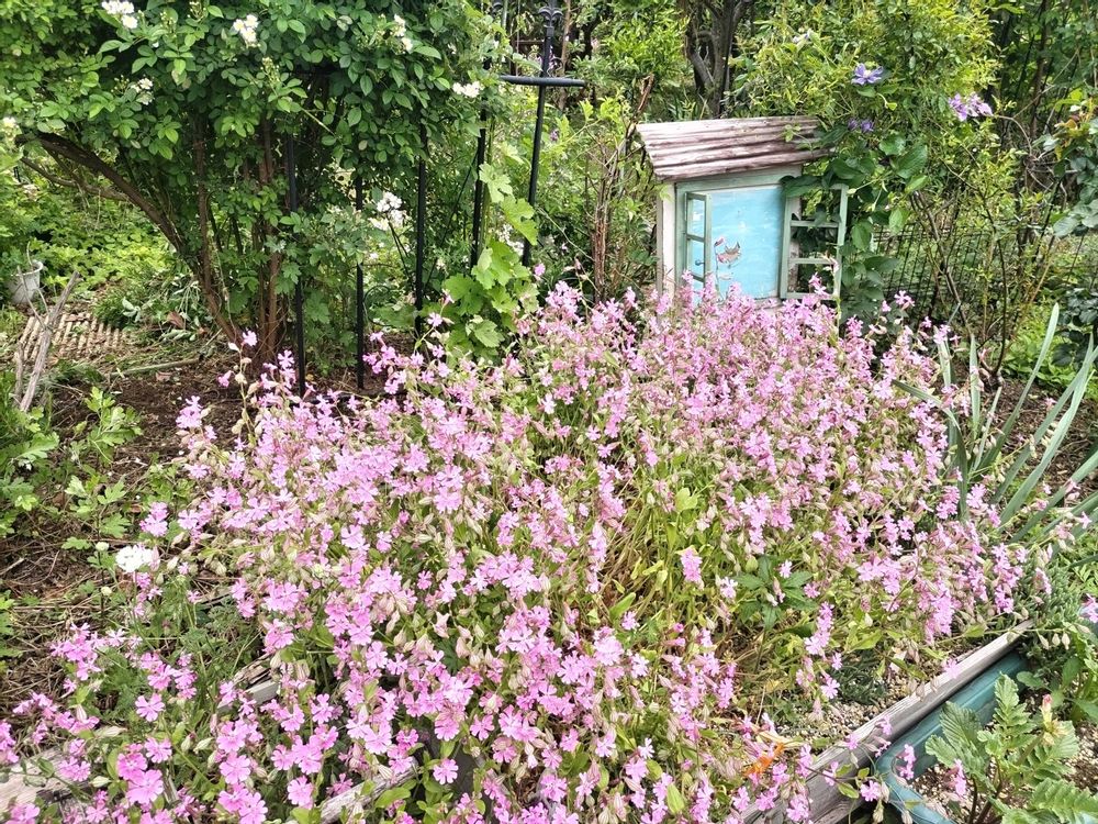 理想としてはクレマチスと薔薇が一緒に咲いてくれる事。シレネ、野生の薔薇。この薔薇は自然と生えて幾つもあります。非常に勢いが凄い。