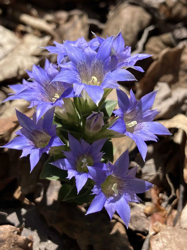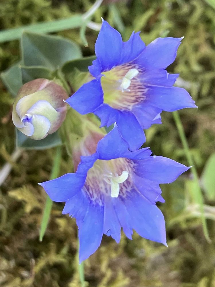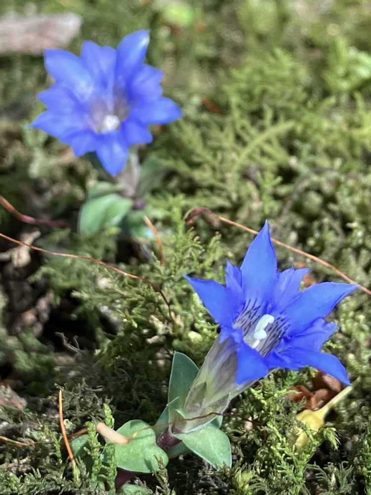 苔や枯れ葉の中から顔を出したフデリンドウ色々💙💜💙