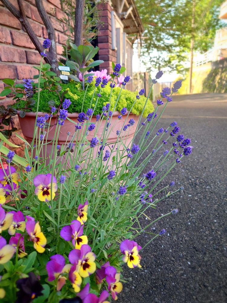 早朝パトロール👀💨昨日とは打って変わって快晴☀️玄関先のラベンダーちゃんが気持ち良さそう🪻🪻🪻🪻🪻🪻🪻側にはまだまだ頑張るビオラちゃん達😄🎶