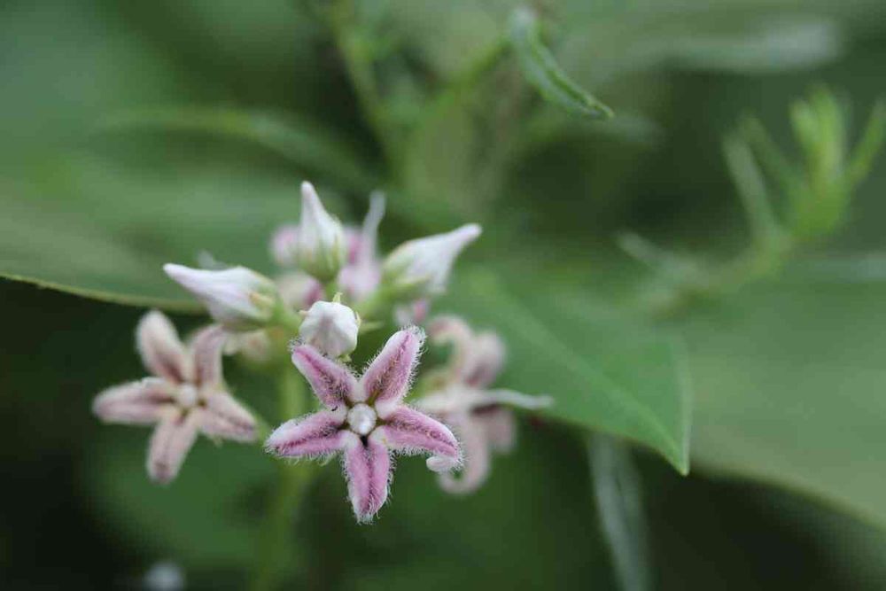 土手のツタみたいなわさわさの葉っぱの中に咲いていました