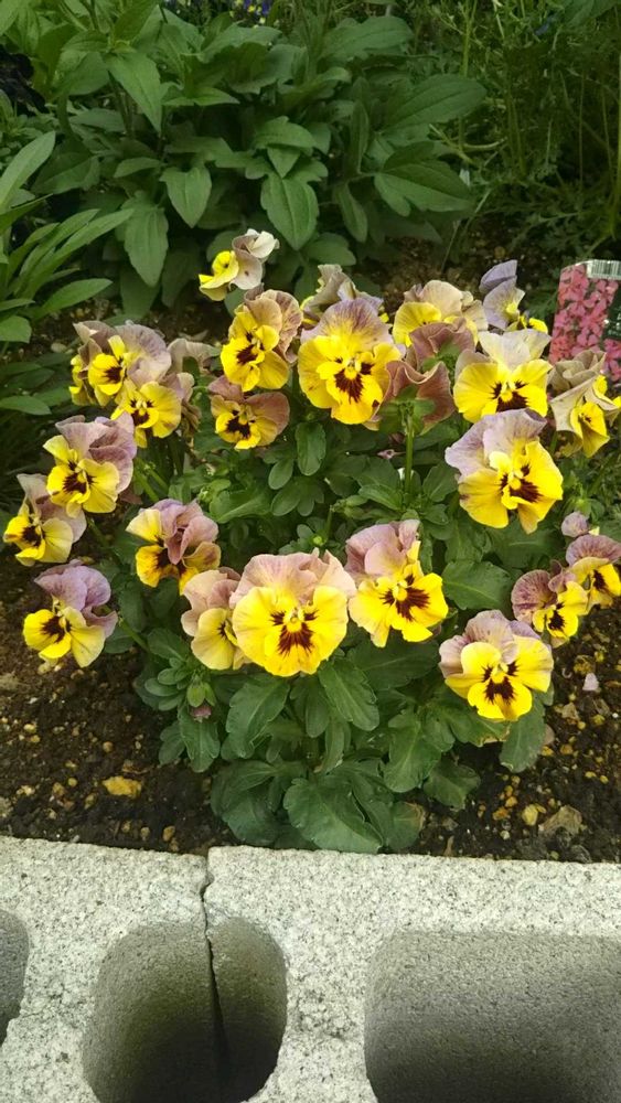 シックなブラックと、愛嬌あるおじさん顔のパンジー🥸、モリモリ咲きですね👍