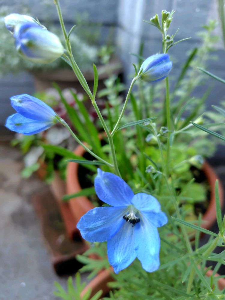 幸せの青い花…夏/冬越ししたバルコニーのデルフィニウム チアブルーが咲きました🩵💙🩵(≧▽≦)