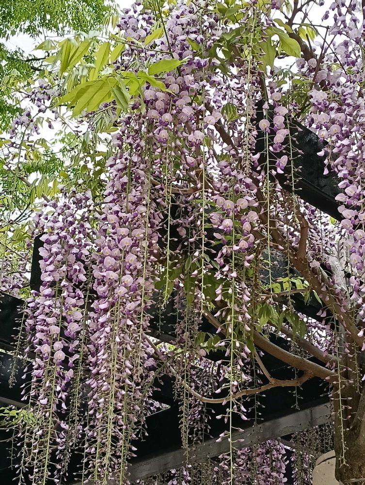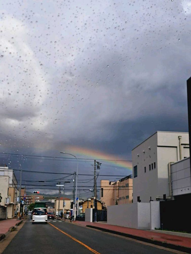 おはようございます☀お花屋さんのフランネル、花壇、昨日虹が出ました!柿畑と空と公園の藤の花でした✨