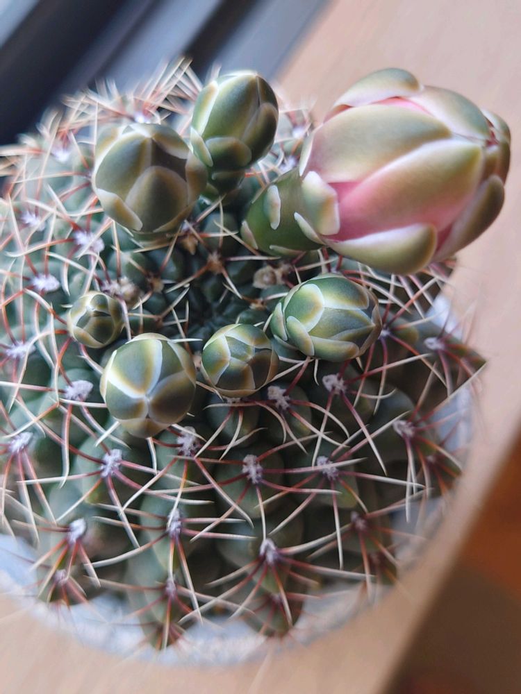 ⑤⑥ ダイソー産の🌵『緋花玉』今年は、7コの蕾を付けてくれました٩(ˊᗜˋ*)و