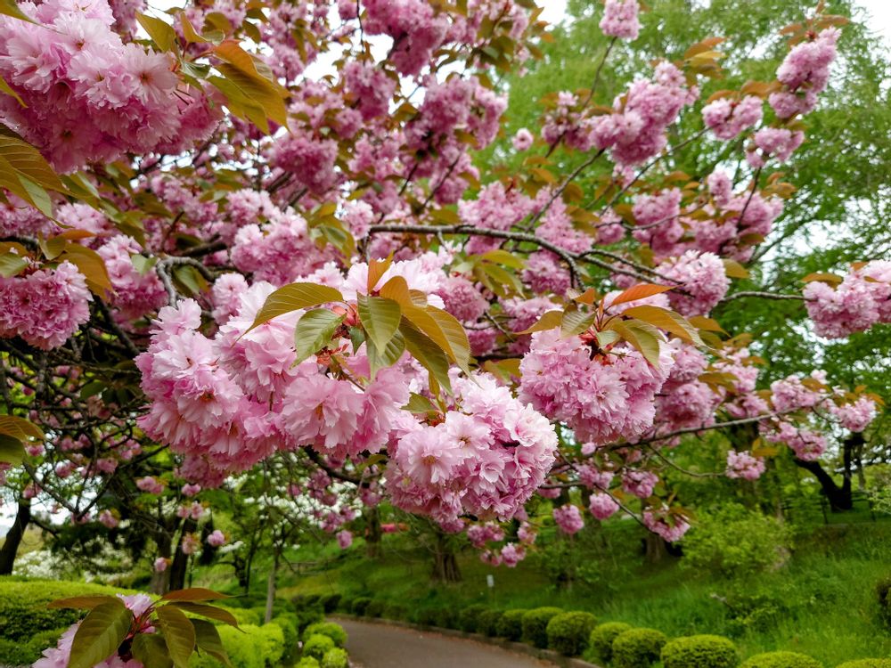 昨日の午前、市内を散歩途中に見かけた八重桜をもう一枚。