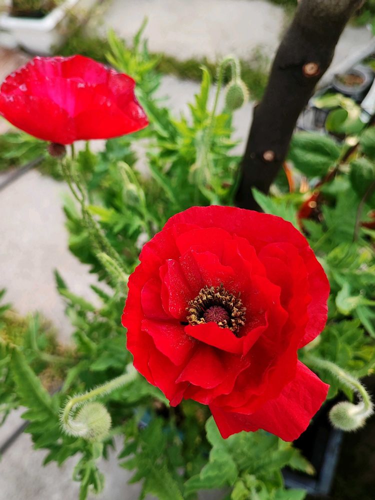 真紅のポピーがポツポツ咲いてます。めっちゃかっこいいです。ポピー好きなので毎年苗をいくつか買って育てるのですが、今年は全員枯れることなくちょうどいいボリュームに育ってくれました。ありがとう。