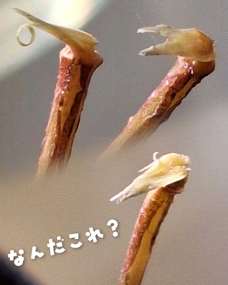 例のビローンは相変わらずありまして試しに1本抜いてみたら髭みたいな根っこがついていました。もう少しほっときます😀!