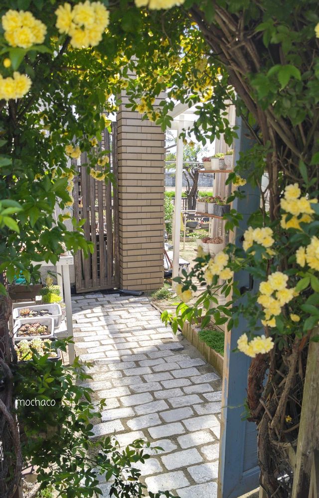 お花のモッコウバラなんだけど、茶色くなると、汚いから昨日カットしました〜😅 え〜このレンガ、手作りなんて