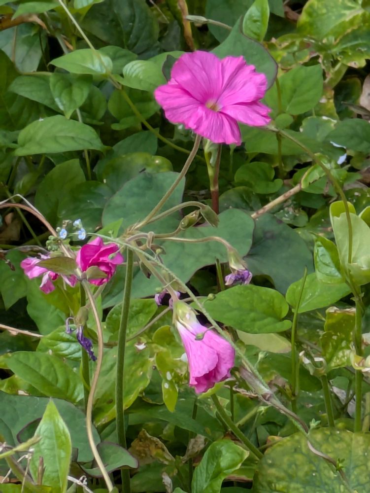 ④何の花でしょう? ヒルガオのような葉ですが、花弁は分かれて見えます。