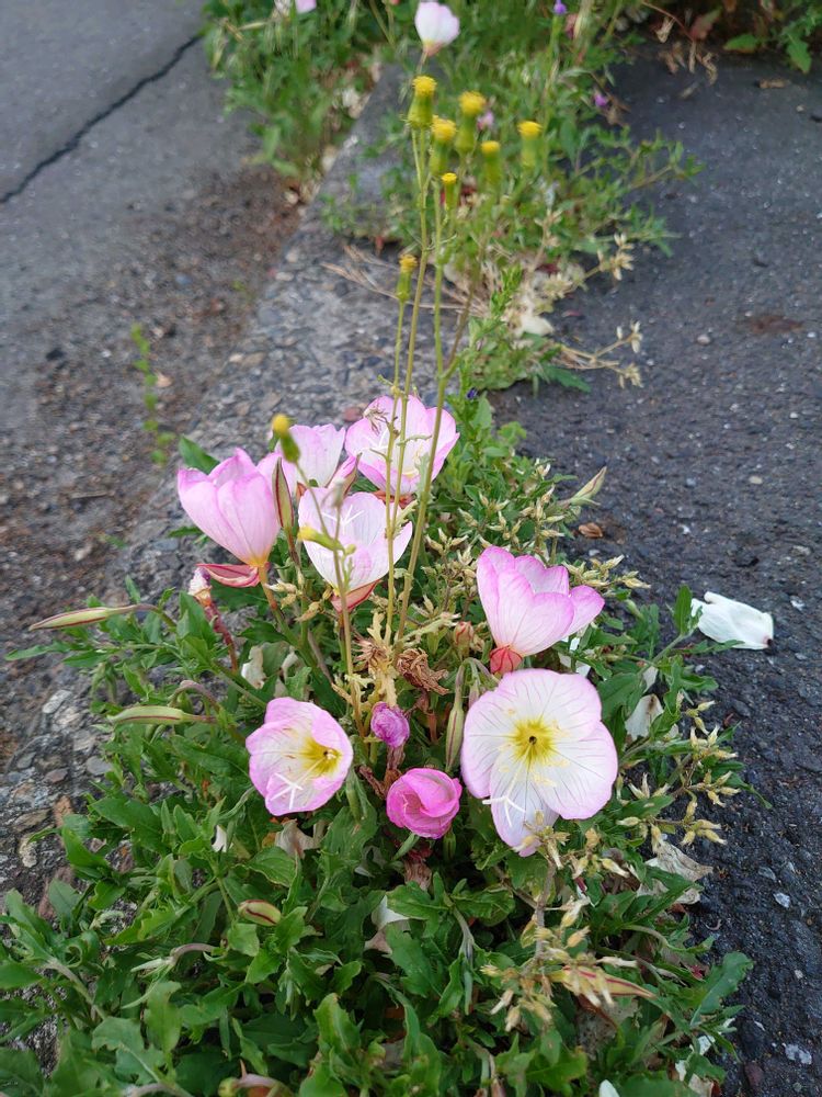 1️⃣モモイロヒルザキツキミソウ🩷ノボロギクと💛一緒に咲いていました😊