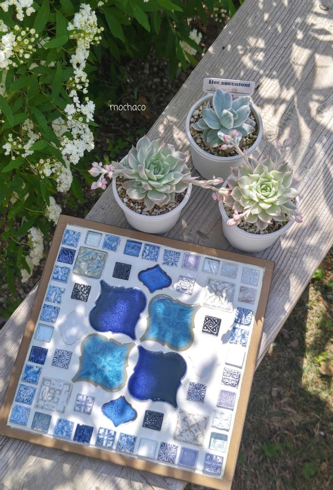 2.3.4枚目 先週会社の仲良しの同僚とタイルのWSに参加してきました🎶タイルの花台と鍋敷き?を作りました✨