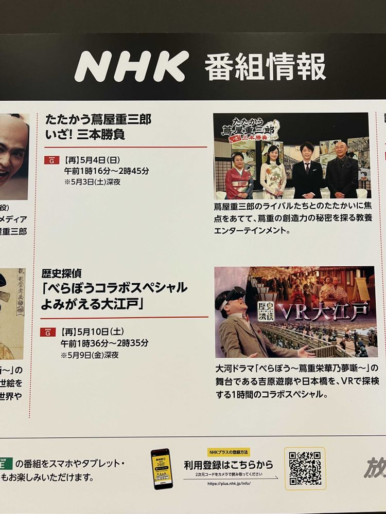 「べらぼう」明日からの新章に先立ち、今日の深夜と明朝、蔦重関連番組があります