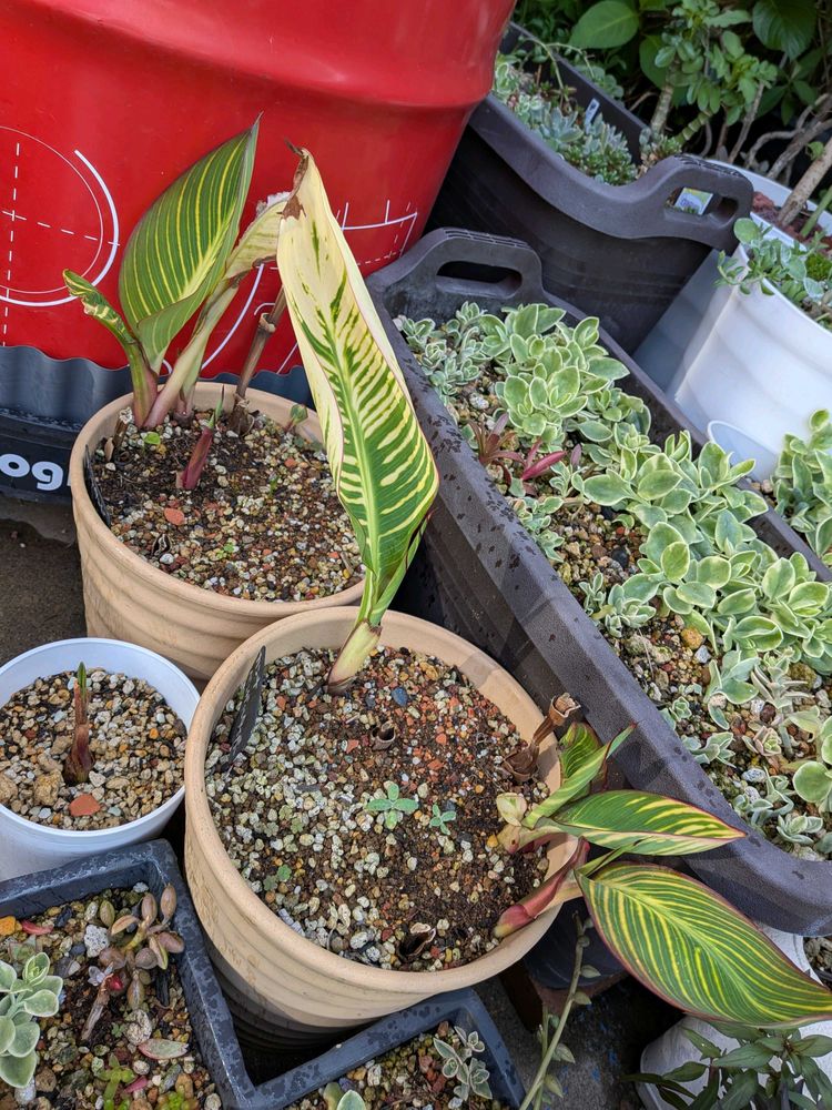 カンナちゃんは相変わらず派手な葉っぱを広げ初めて明るい雰囲気😍