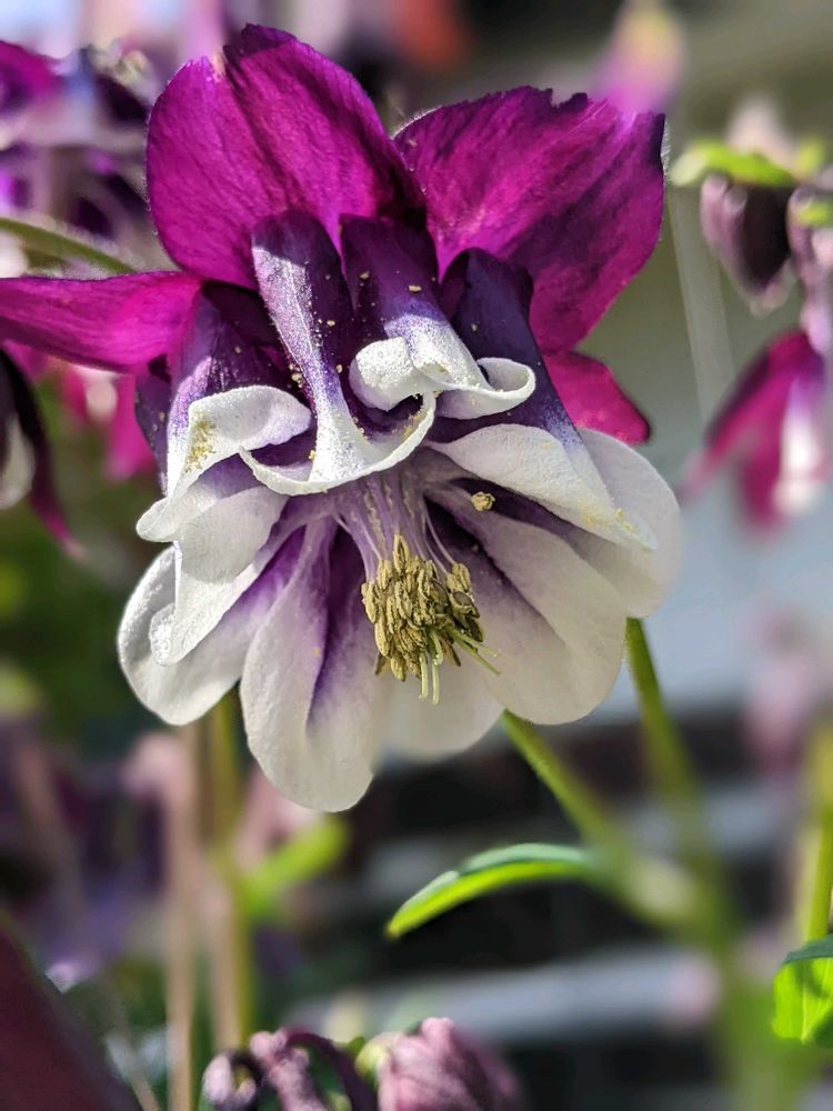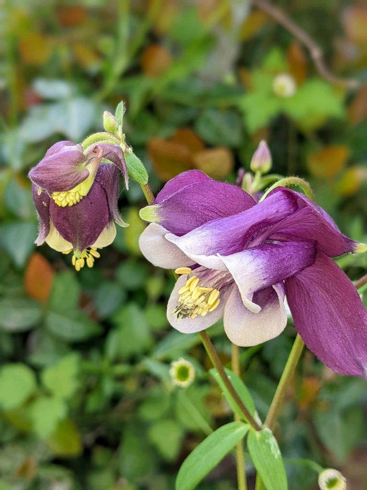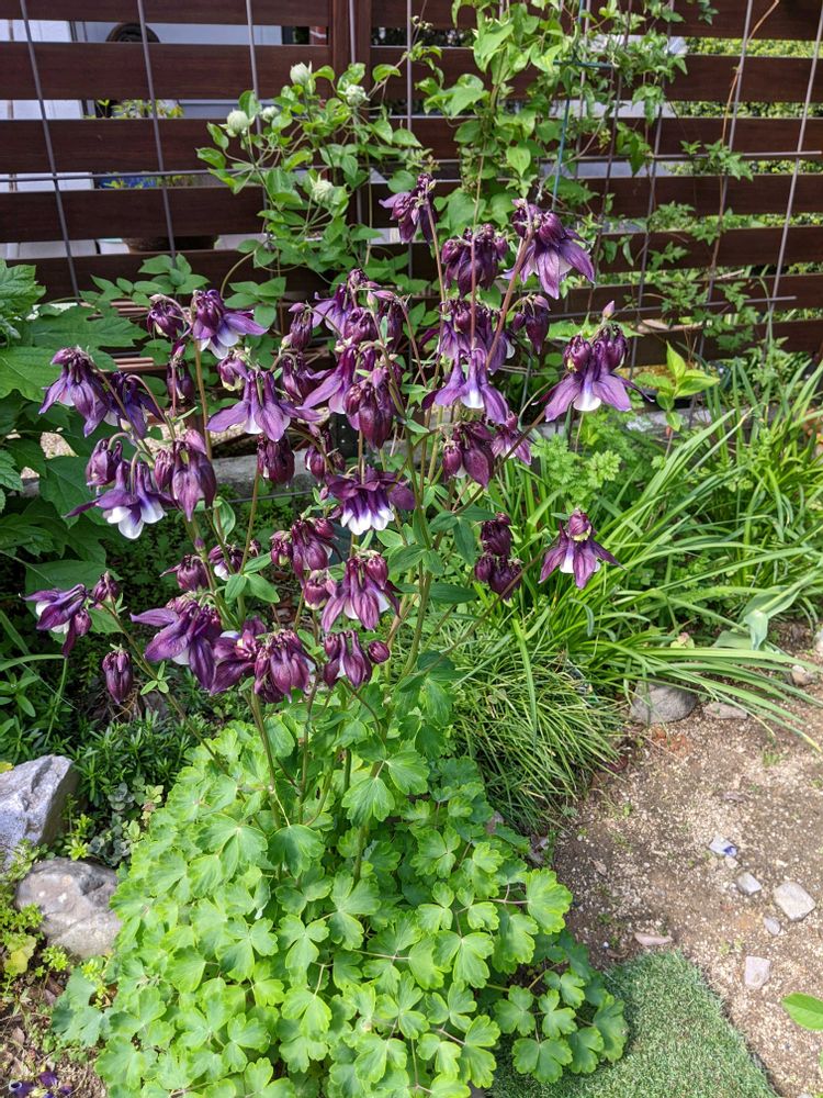 今咲いているのは西洋オダマキの紫と少しダーク系の子が盛りもり(アップはブラックベリーと交配したのかな)