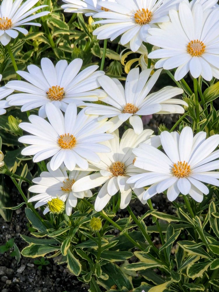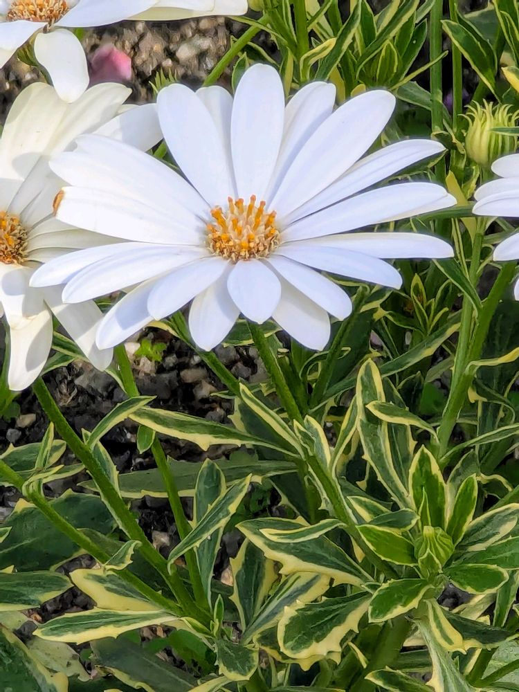真っ白な花と斑入りの葉が素敵なオステオスペルマム
