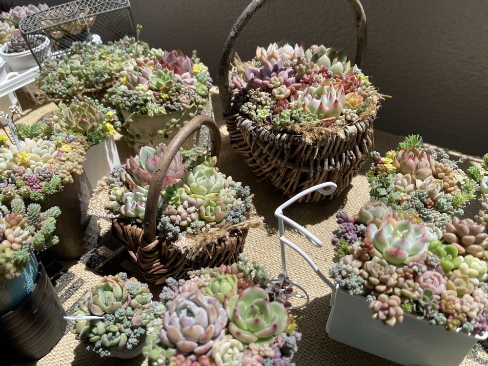 うわぁ~ん♥おうちゃんさんの寄せ植えは可愛すぎるーん😋こうやって飾られるスペースがご自宅にあるんですかぁーうちはトレイにぎゅーぎゅー詰めですぅ〜💦💦でも、おうちゃんの寄せ植え眺めるの好きでーす♥