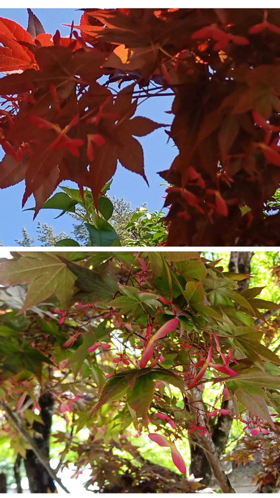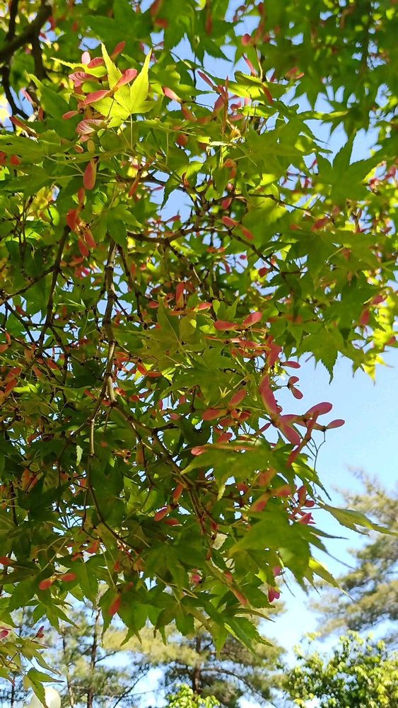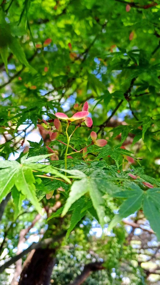よく見るイロハモミジのプロペラは上向きだけど、種類によって下向きのプロペラもあるのねー。(3枚目)
