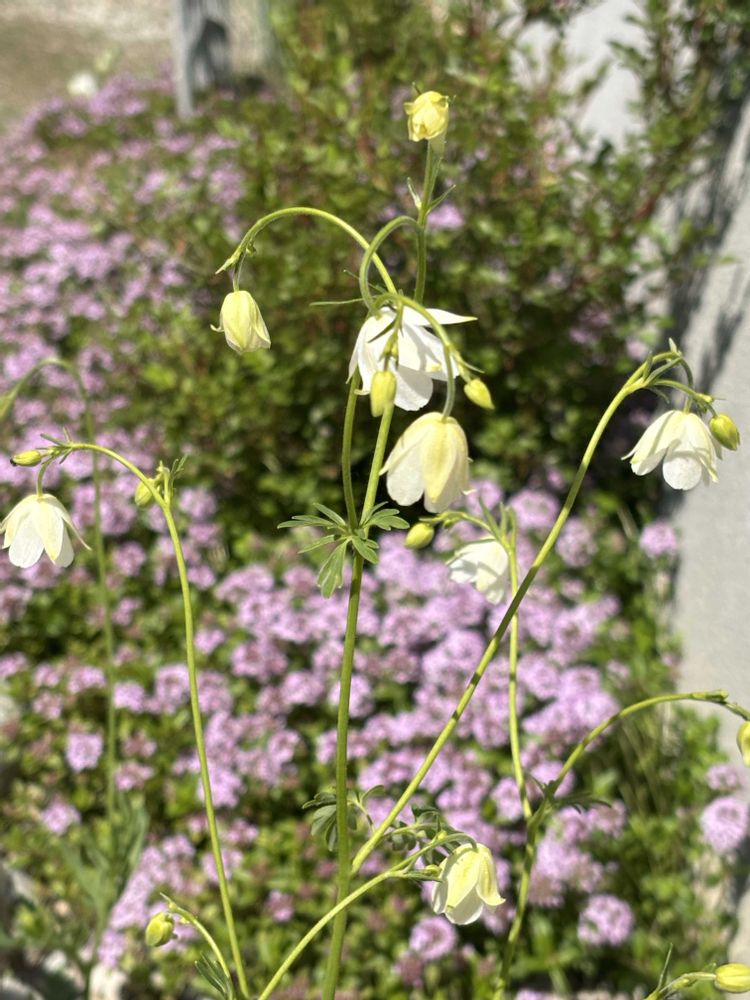 ④オダマキさんの後ろに見えていた、タイムさん、グランドカバーのつもりでしたが、どんどん侵食して来て💦💦💦可愛らしいからどうしようかなぁ?⁉️