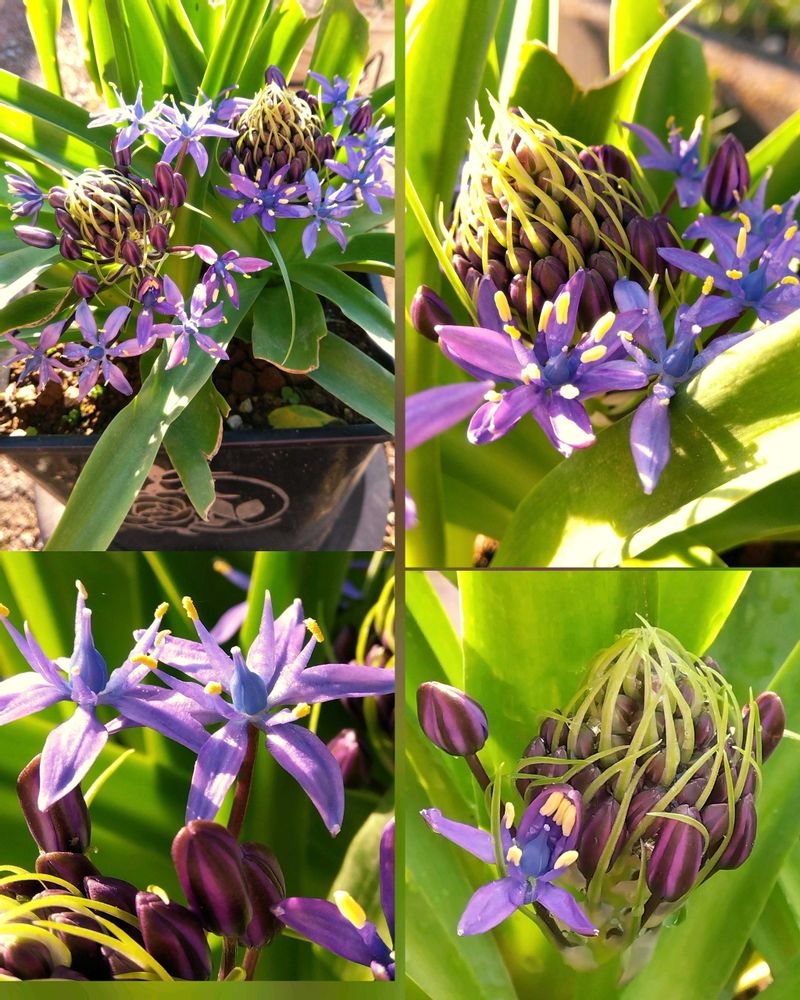 ③ ④花友さんに株分けしてもらったものです名前🤔🤷🏻♀️ワカラナイままでしたが 蕾でわかりました💡GSの投稿📮も沢山有りますね(•ө•)♡キジカクシ科の球根植物 英名:「Cuban lily」学名:Scilla peruviana」6本の雄しべ・雌しべは徳利型📝素敵な色味🫶