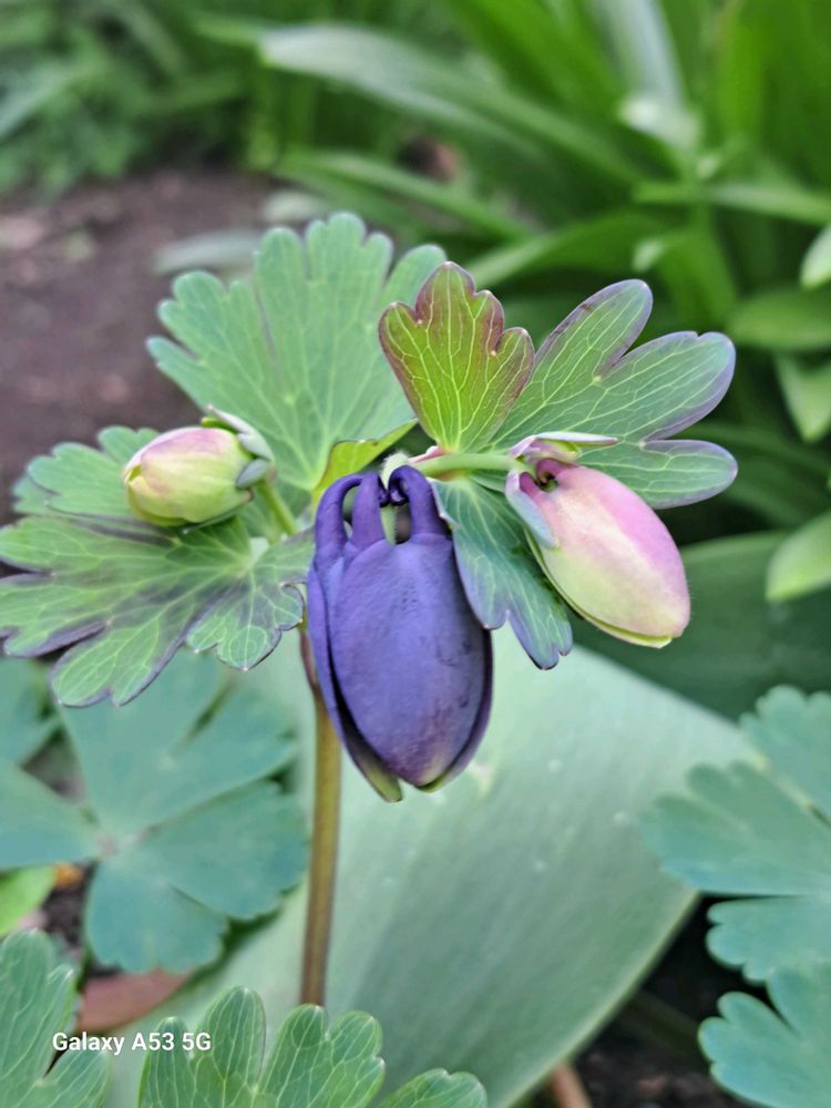 お買い物へ行く途中で見つけました。「まだ蕾かぁ~」と思ったらお隣のお宅のオダマキは咲いていました。こちらは南向きで日当たりが良いので早く咲いたようです😆
