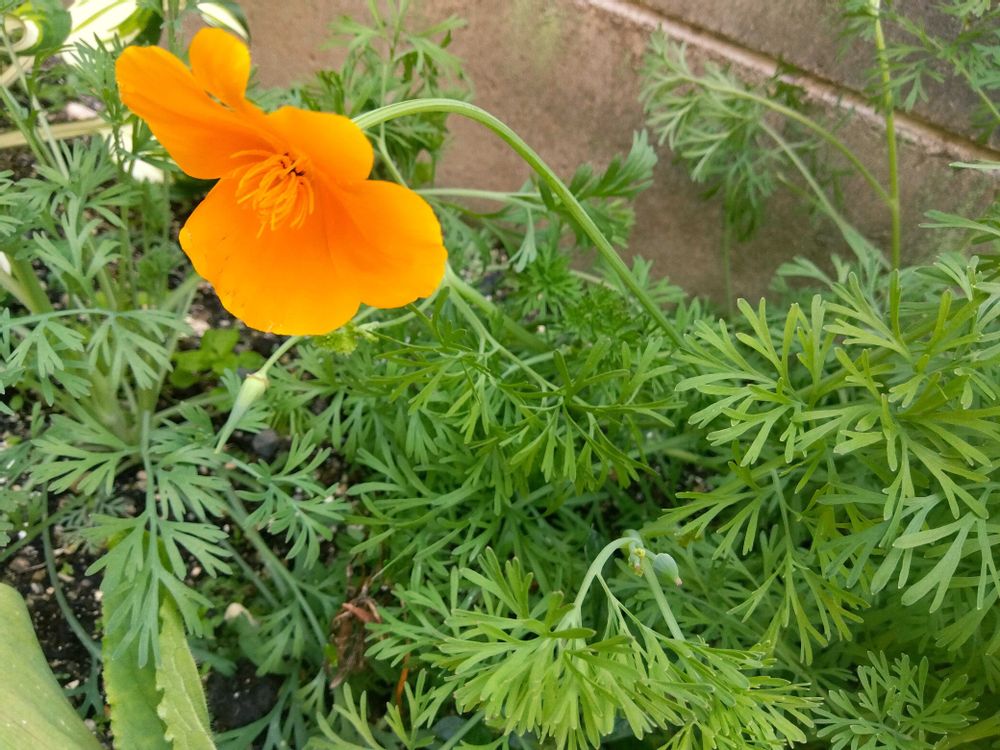 サカタのタネさんのミックスフラワーガーデンの種からカリフォルニアポピーが咲きました🌸