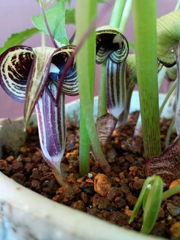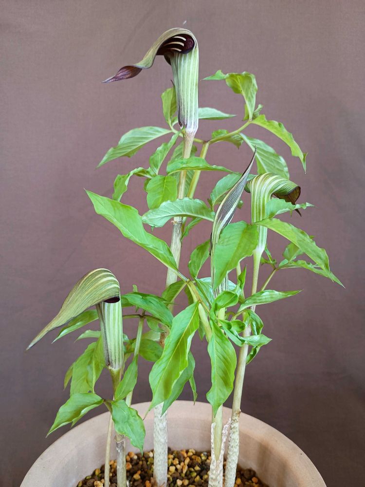 3.4.🌱テンナンショウは気味悪いと言う人もいますが可愛いと思って育てています💚🤎🩶🖤🌱