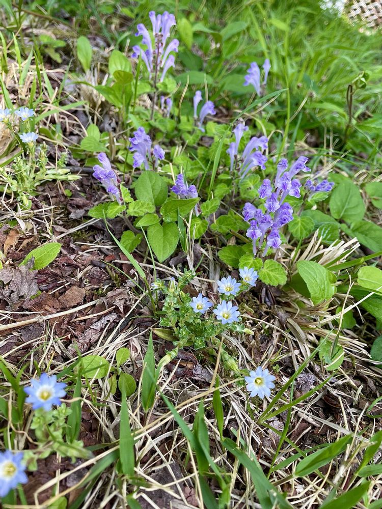 コケリンドウとコバノタツナミソウは争わずぬくぬく元気に咲いているのね😃仲良く咲いているんだ🤭💕