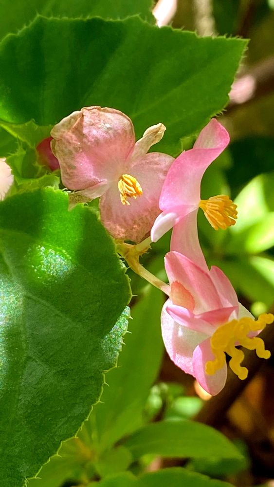 ①②③こぼれ種育ち2年目のベゴニアは次々に花を咲かせています🌸