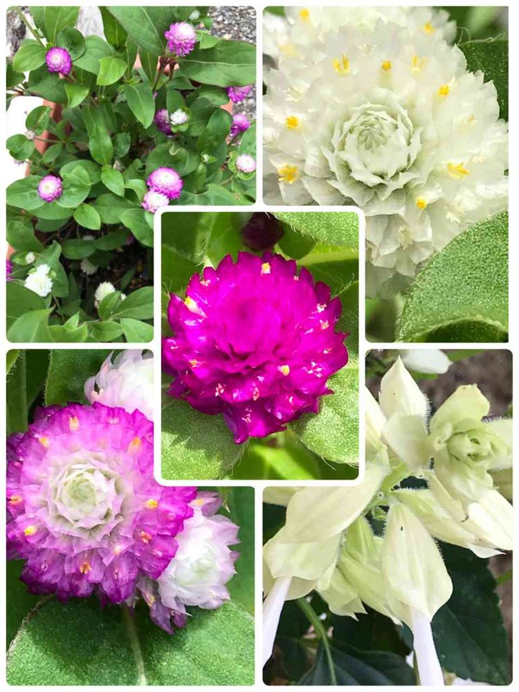 千日紅の白もアップにすると可愛い(๑>ᴗ<๑)ですね。