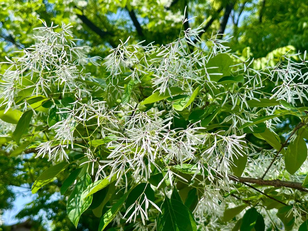 初夏に雪を被ったような真っ白な花を咲かせる不思議なその姿から「なんじゃもんじゃ」とも呼ばれています