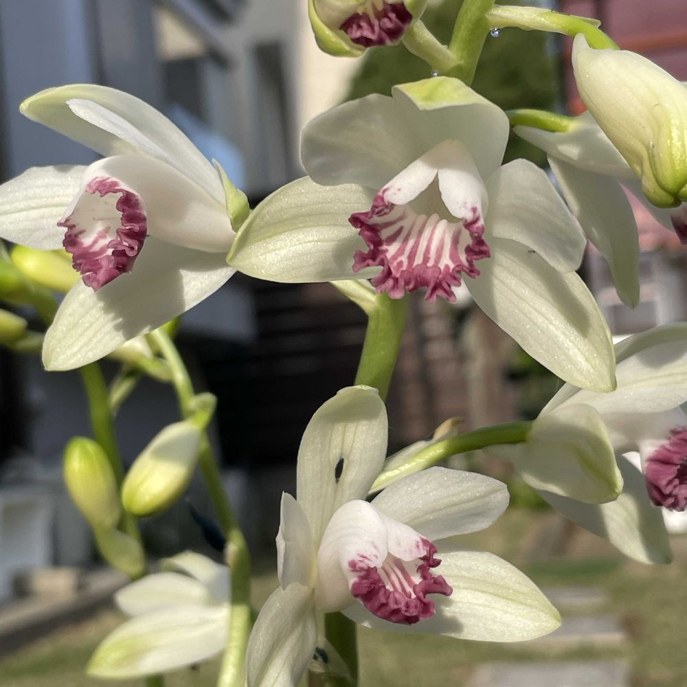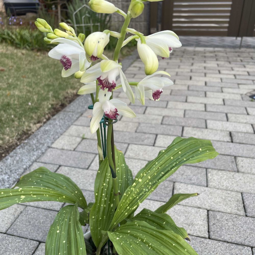 一般的な星ケイランは黄色花ですが、日向流星は変異種で白花紅舌です。