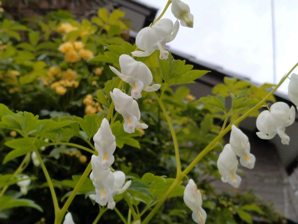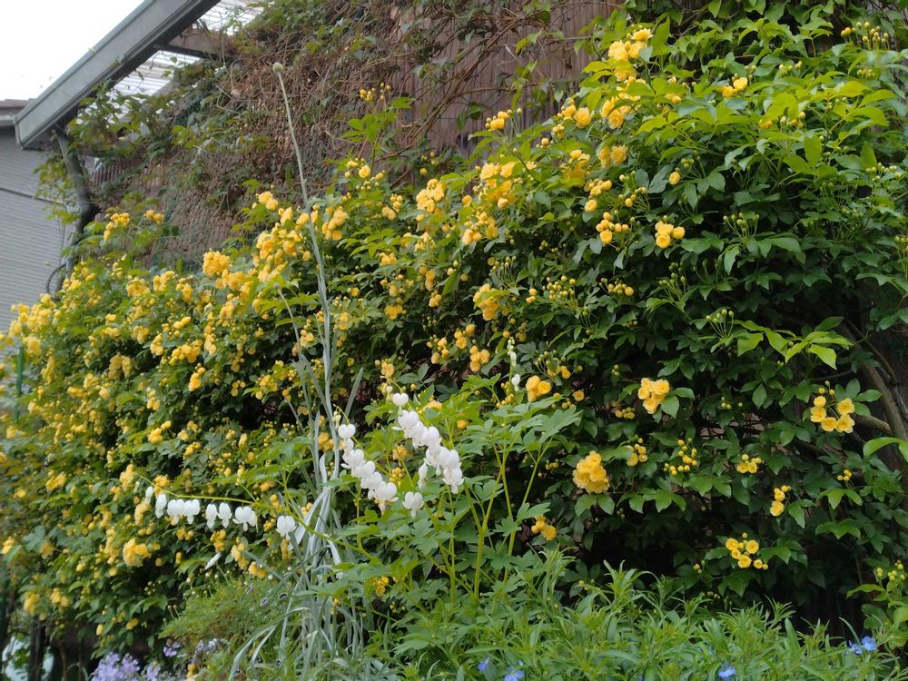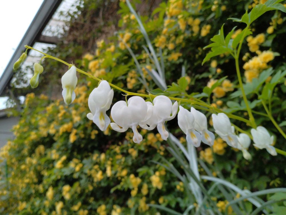 ④⑤🌿🤍タイツリソウ🤍🌿モッコウバラをバックに🎏泳いでます~😊