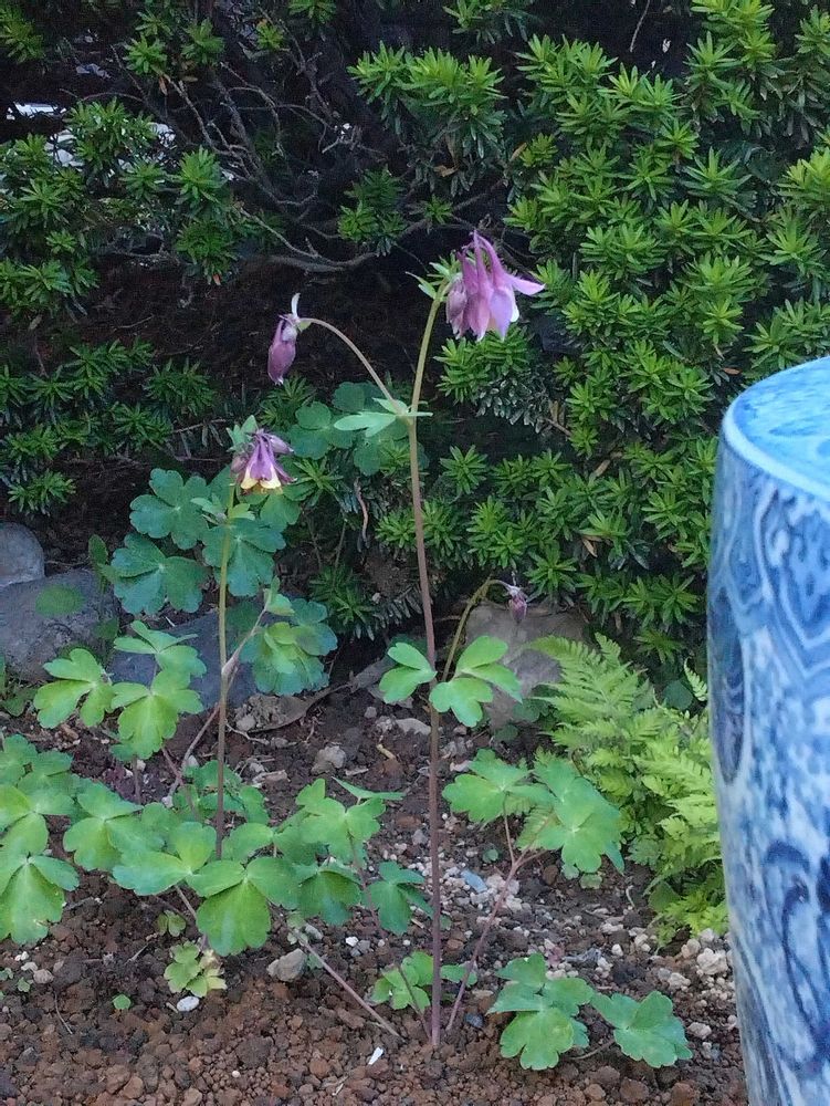 1️⃣ここは、メダカ鉢を掃除する時に赤玉土を捨てる場所。そのせいかオダマキがとっても元気🥰