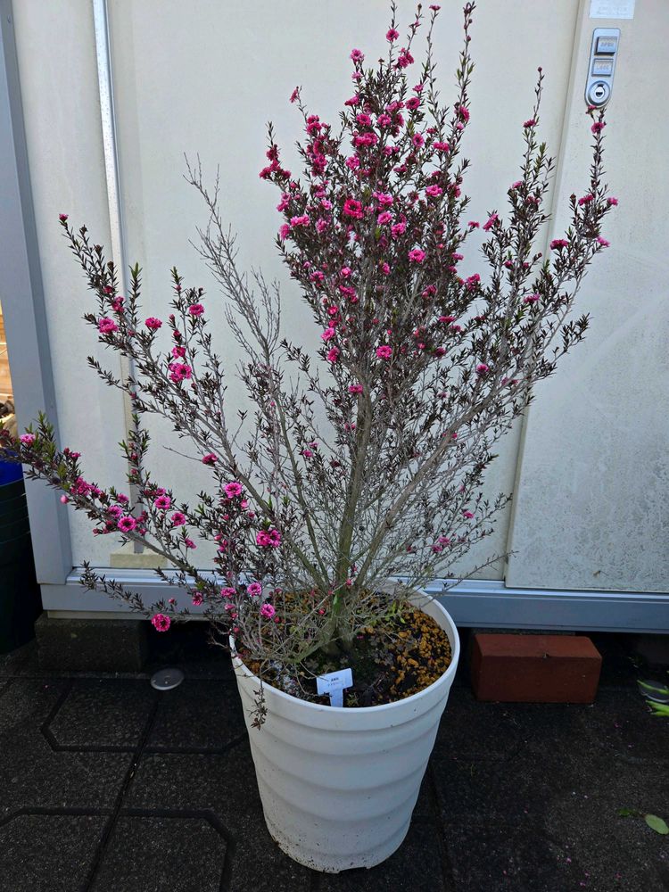 ギョリュウバイは、樹高3~5mの常緑低木で、地植えでも鉢植えでも成長が早く、シンボルツリーとして育てられるほど大きく育ちます。3年程度で、樹高が1.5mほどになることもあります。