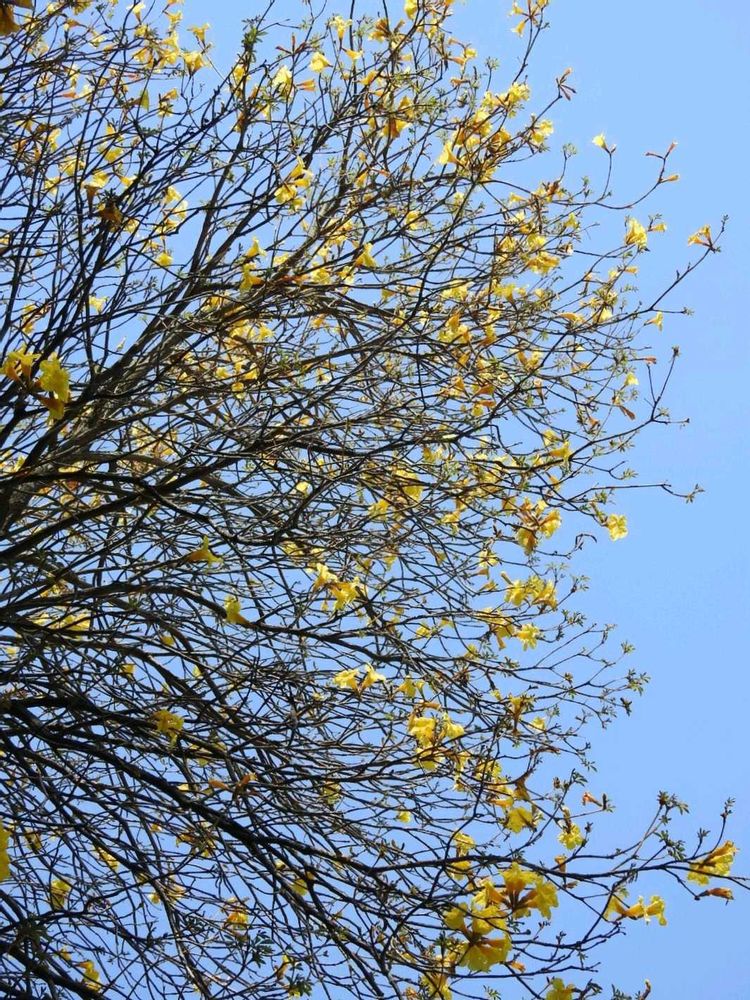 イペーの木🐎馬見丘陵公園⛲️に高さ7メートル位の木が一本しかありません✨珍しい木の様ですね今黄色い花が満開でした🤓👌