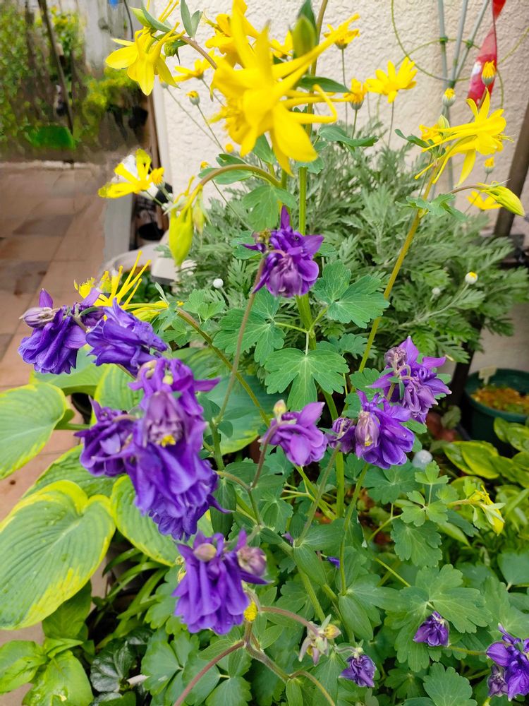 我が家の西洋オダマキさん達で〜す。💛・💜・🩷3色でした🥰