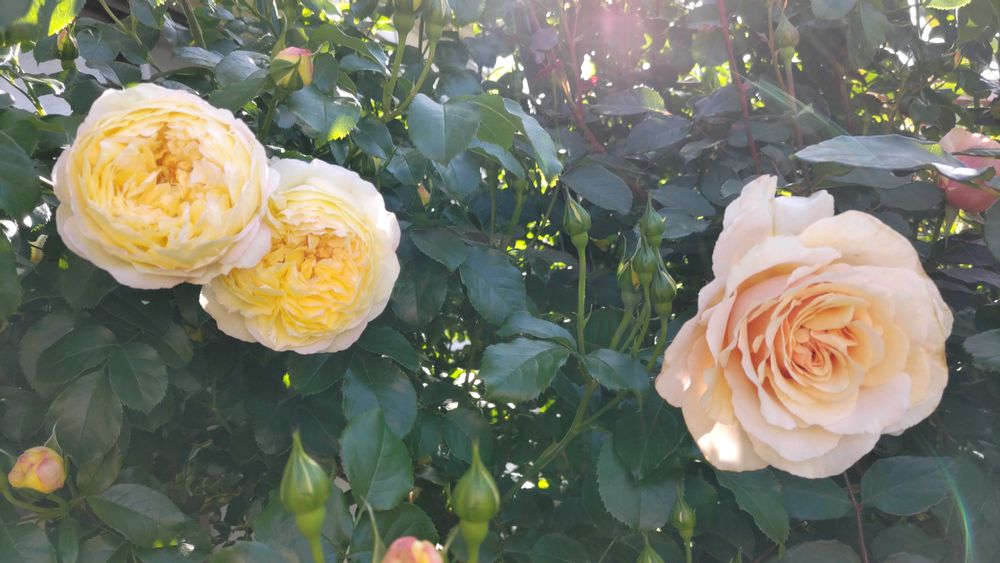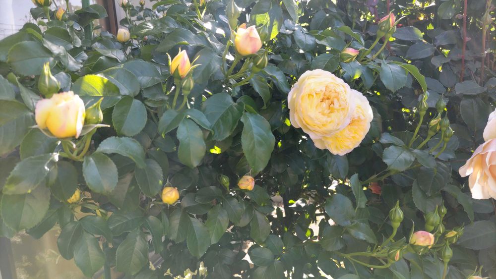雨上がり今朝のバラ達が一斉に開花したり、ぷっくり蕾になって来ました。