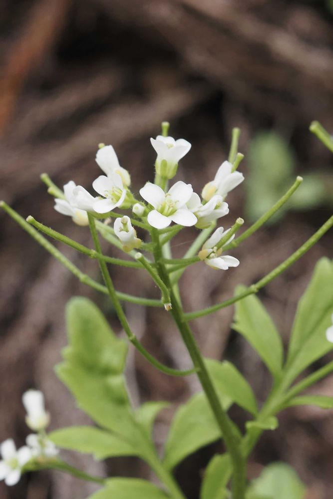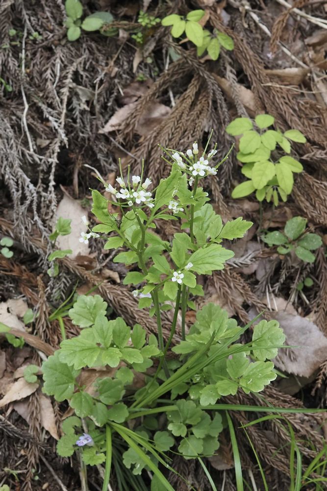 白花、十字形花冠、花だけ見ていても、何が何やら。根生葉の形と、毛の有無で区別します。コノ娘は奇数羽状複葉、有毛です。撮れたてドットcomの比較表を見ながら、コノ娘で良いのかナ⁉️。①②③、④⑤は同じ株です。