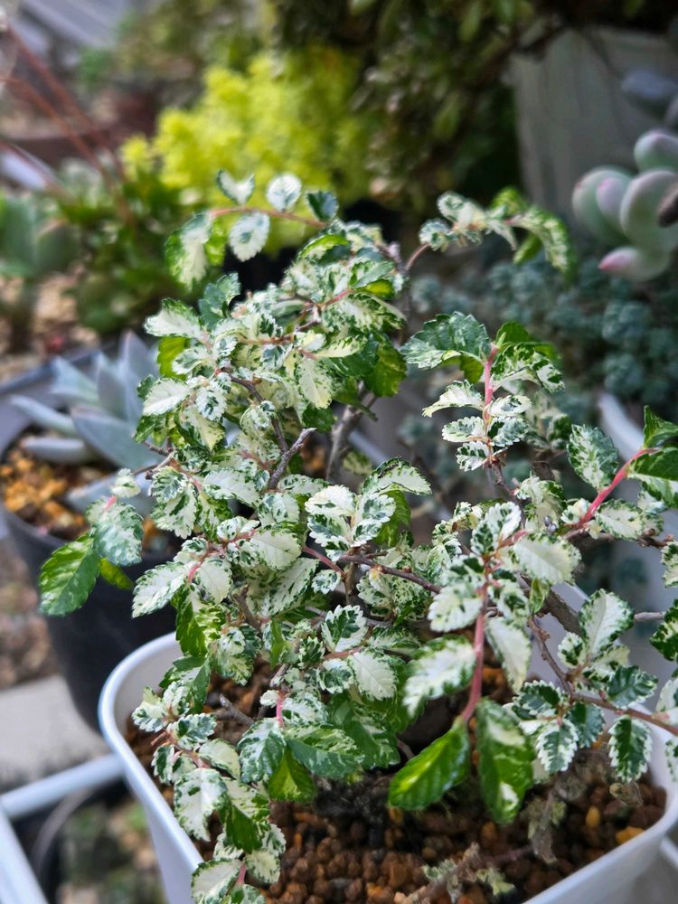 斑入りちゃん( Ꙭ )!!かわよーい🤤😍うちには金芽ニレケヤキがおるけど同じく絶妙なサイズ感で植える鉢がなく、根巻きのまんまじゃわ😗早うつくったげねば_(:3 」∠)_