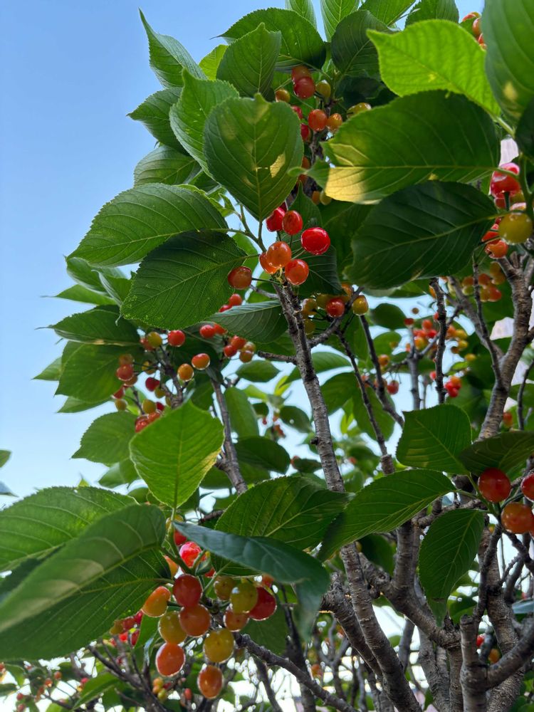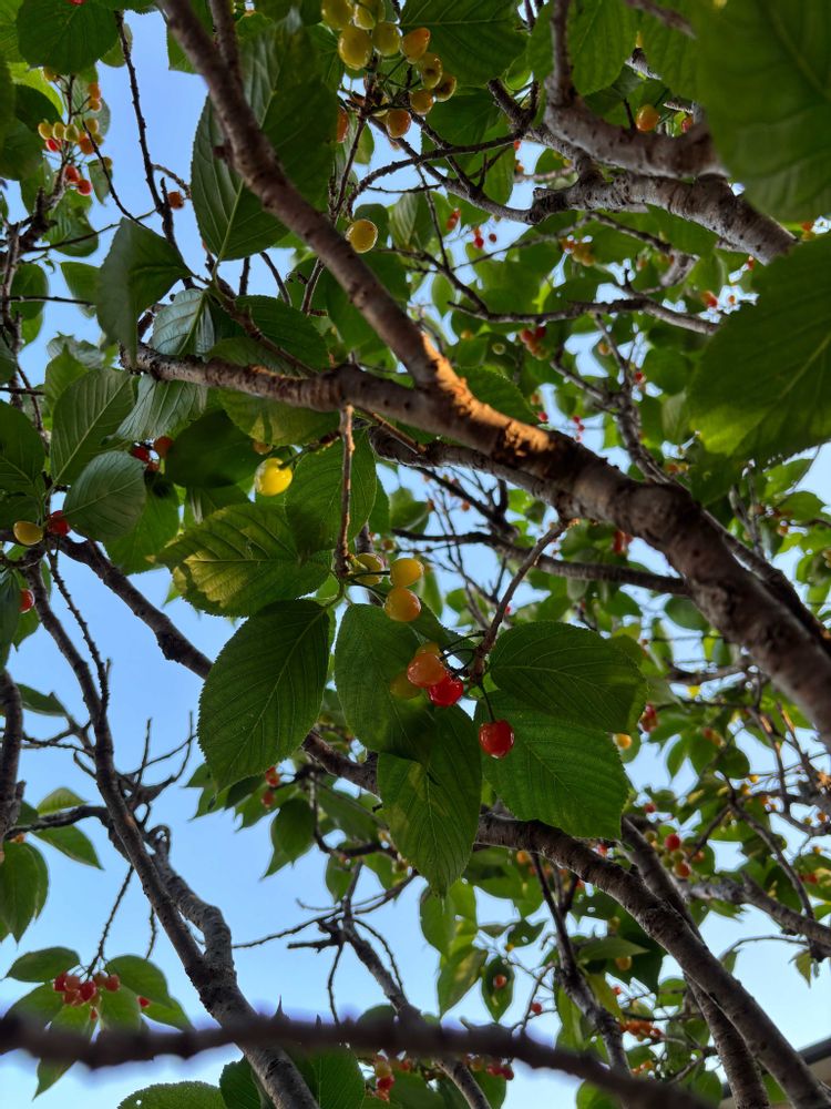 ①②③さくらんぼの実が赤くなって来ました🍒まだ酸っぱい