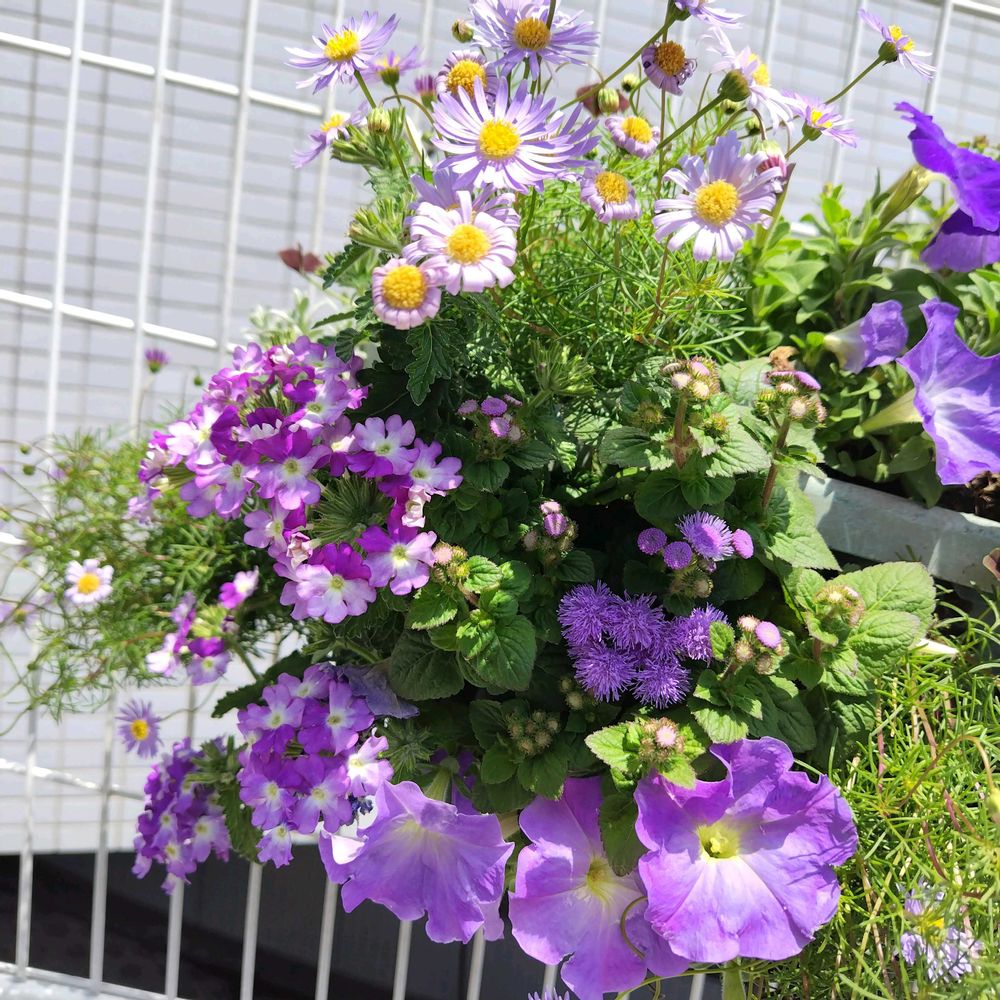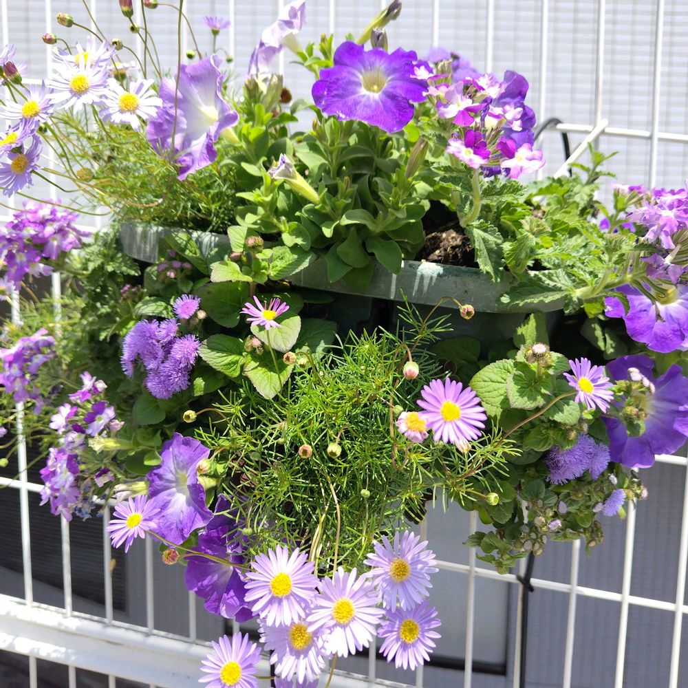 素敵な寄せ植えですね💜🩵💜💙💜🤍💜🩷💜