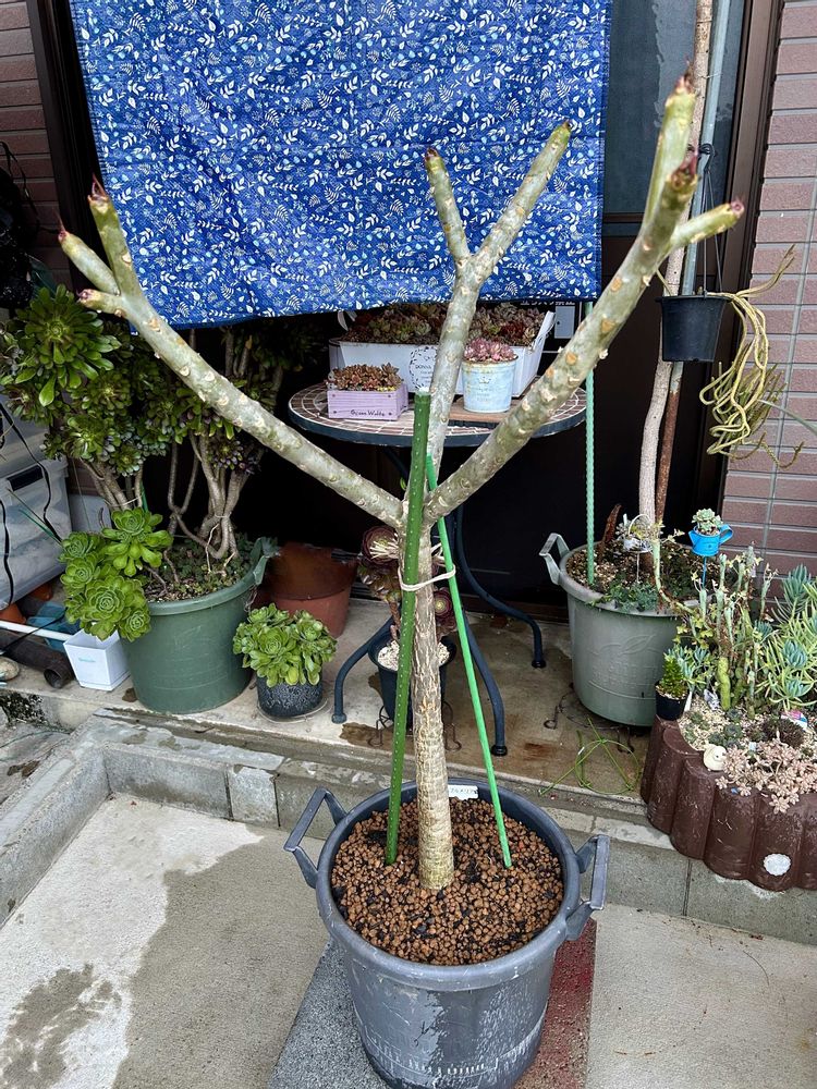 プルメリア、買った時は三又だったと思ったけど去年先の方の枝が少し増えたよ😊